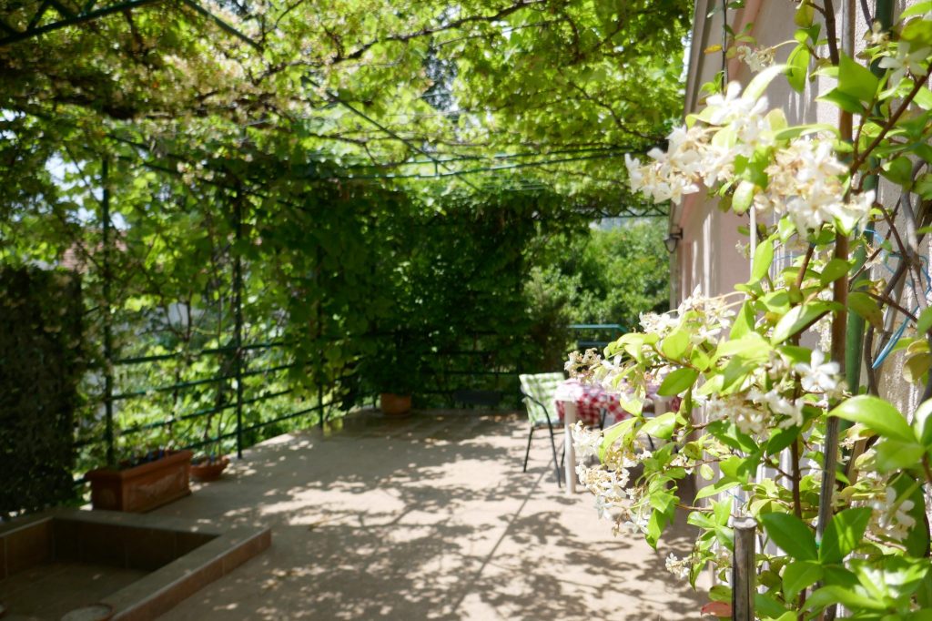 The EcoHouse is positioned so that the main windows are on the south side, with an overhang on each floor. In the summer this overhang on the terraces shade the windows from the sun. Now in winter, as the sun is much lower, every bit of light and sun flood us with warmth. Our doors are open {only for a short while} to let the sun-warmed air come in, a joy to live in this house of the future. This really demonstrates the value of using straight-forward passive features to the optimum – positioning to make maximum use of the sun, fewer openings to the north, east and west, and high external insulation. Surrounded by trees, nature itself shares our home, biophilia.